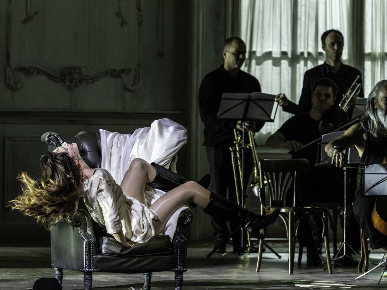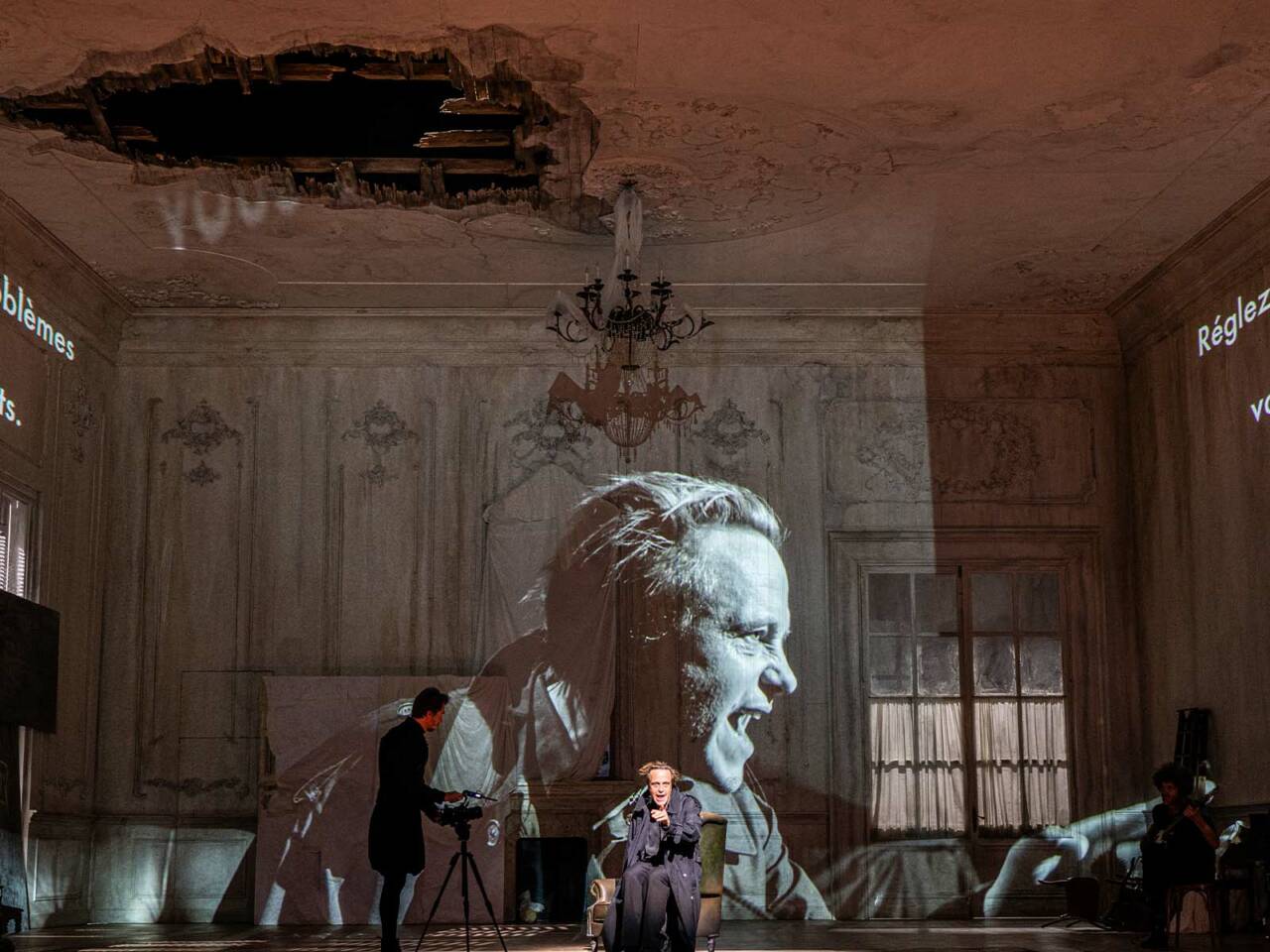 Adapted for musical theatre — that is, with a performative approach blending text and music in all possible combinations — Hamlet / Fantômes is accompanied by the Ensemble intercontemporain, conducted alternately by Pierre Bleuse and Yalda Zamani. The orchestra will perform music by Blaise Ubaldini, composed specifically for a large ensemble (thirty musicians) including drums and electric bass, an electronic synthesiser, and a vocal trio.