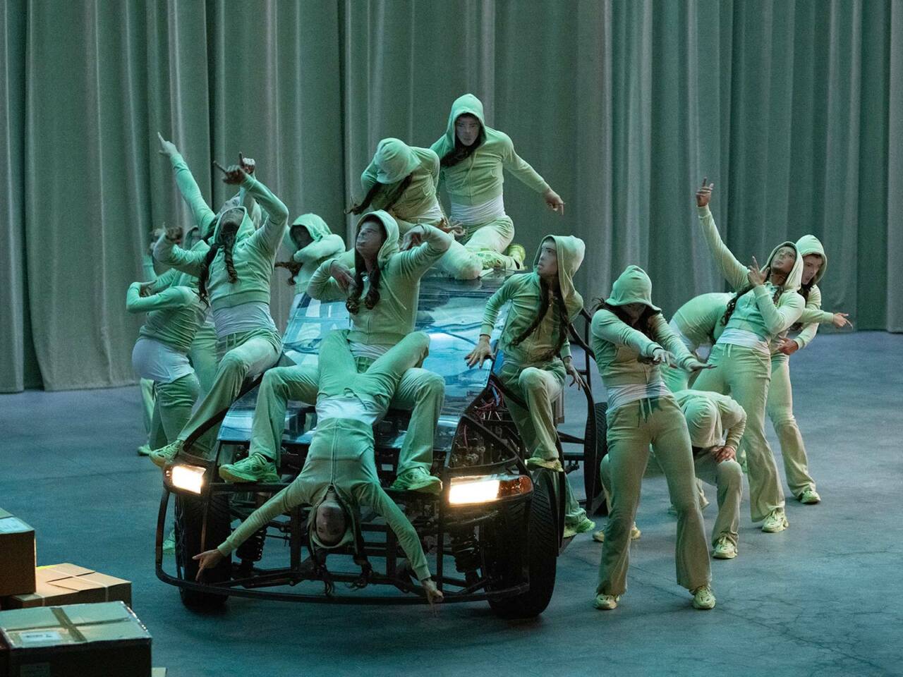 This show features a special stage set-up. The orchestra seats are replaced by bleachers all around the stage.