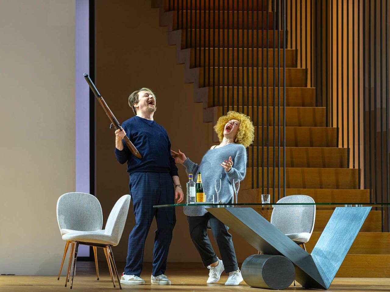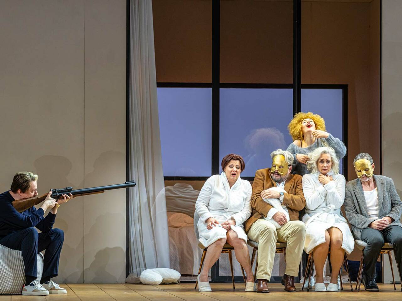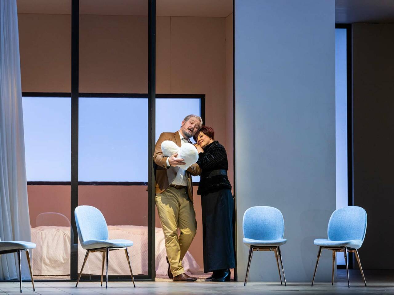 À la recherche d’un peu de piquant, deux couples âgés d’une cinquantaine d’années décident de se rendre dans une villa le temps d’un week-end pour pratiquer l’échangisme. Tout ne se passe pas comme prévu, puisque les couples ne résistent pas à une telle épreuve. Le metteur en scène Dmitri Tcherniakov s’empare de cet opéra de 1790 et le transpose à notre époque où tous nos repères, nos normes et nos lignes rouges ont évolué en matière de relations humaines. Ici, pas de travestissements traditionnels, de déguisements ou de quiproquos.
