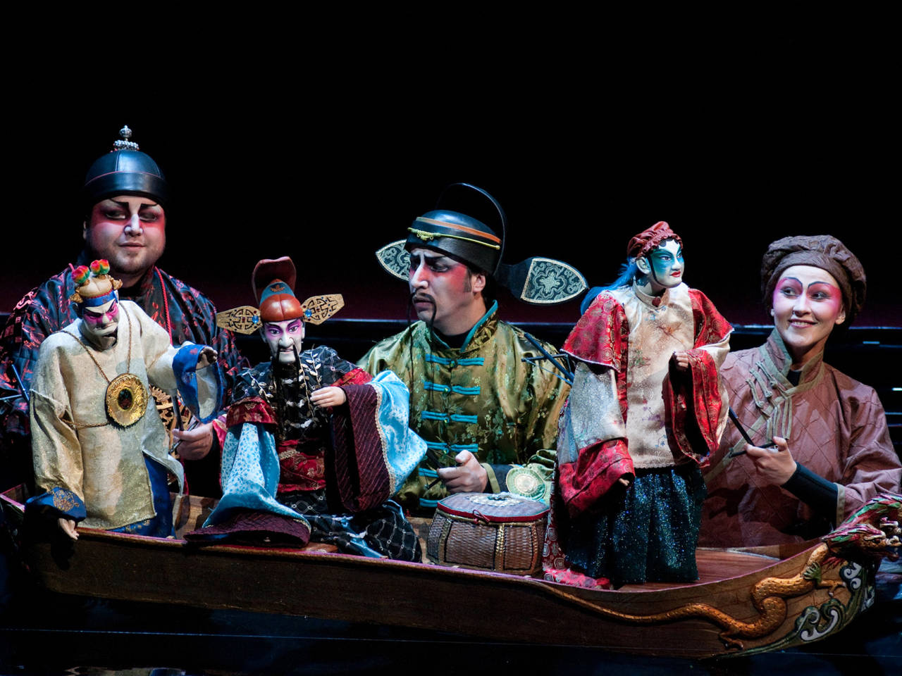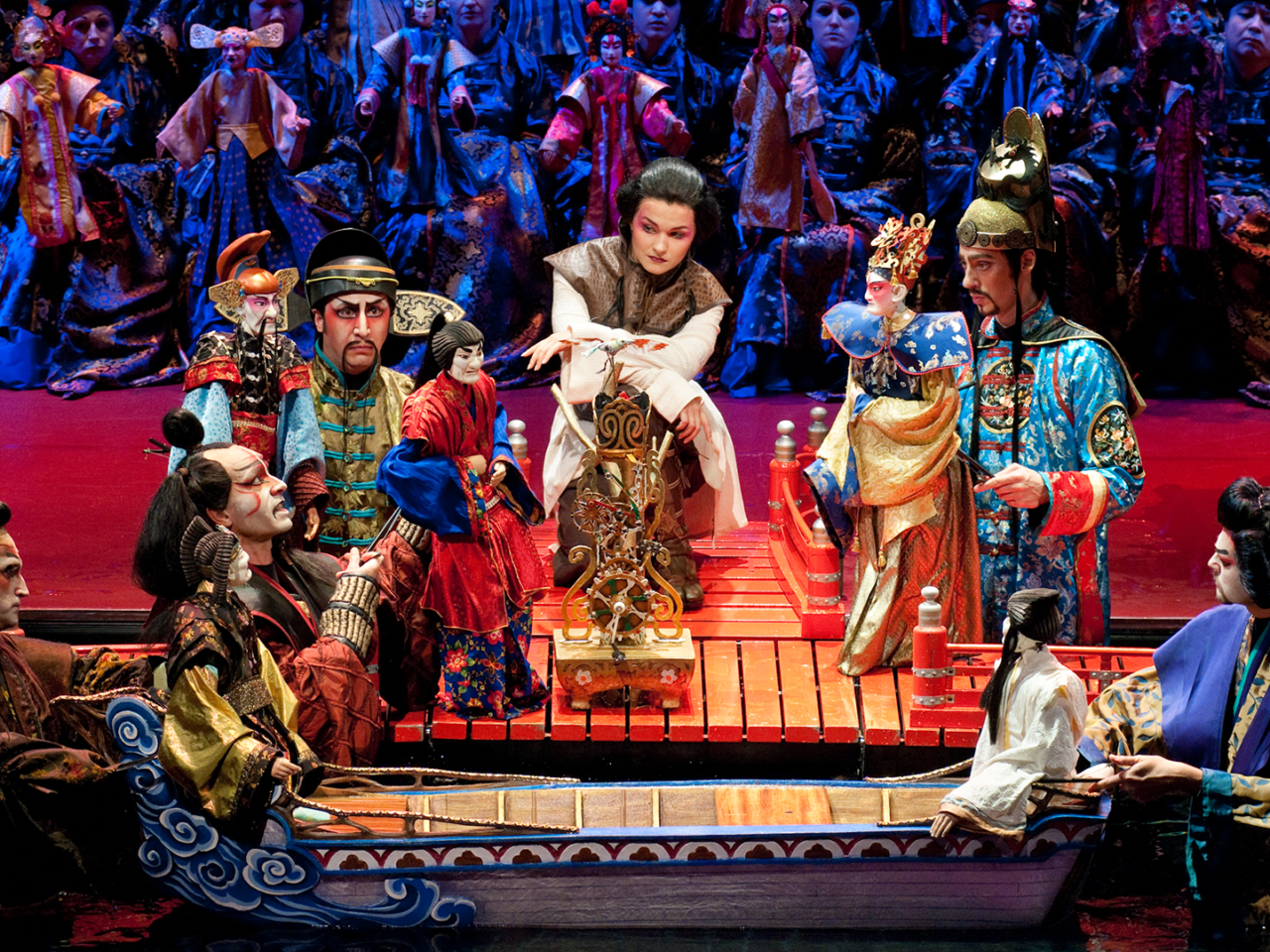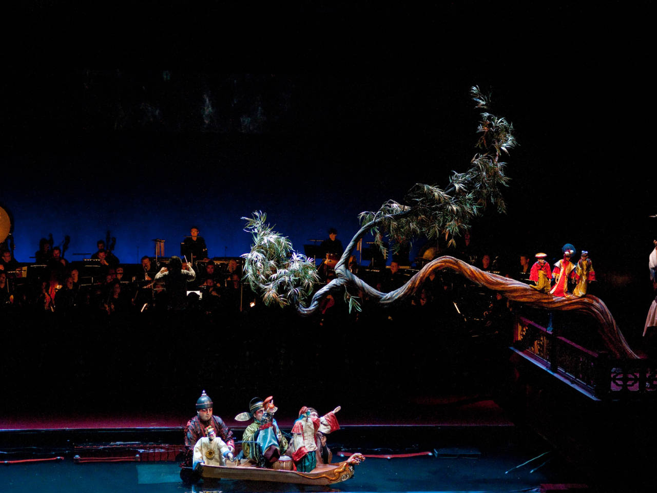 1ère acte – Admiratif du Rossignol, le Pêcheur relève chaque soir ses filets à l’écoute de son merveilleux chant. Guidé par la Cuisinière, le Chambellan, le Bonze et les Courtisans partent à la recherche de l’oiseau, et lui transmettent l’invitation du monarque à venir chanter dans son palais.